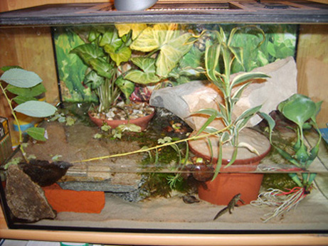 Ja das sieht schon ziemlich hübsch aus! Ich habe mir das mit einzeln Stehenden bepflanzten Töpfen auch schon überlegt! Aber ich glaub ich werd das mal mit der Glasscheibe ausprobiern! Das einzige was ich daran nicht so gut finde ist das die Tiere da nicht so leicht raufkommen werden oder doch? Hab sowas mal gesehen in ner Reptilienmesse und da war ne Unke die hatte Probleme da rauf zu kommen (ans Land)
