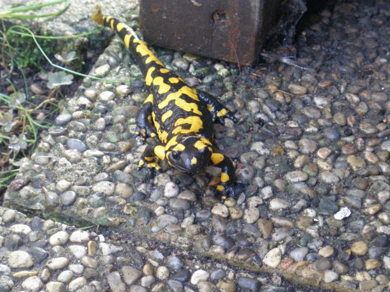 Im Frühjahr und jetzt im Herbst stolpert man bei uns fast über diese wunderschönen Tiere,und da hinter unserem Haus ein Wald ist,hab Ich den Salamander dort hin gebracht,Er wird dort sicher ein besseres Versteck zum Überwintern finden als bei mir im Garten.