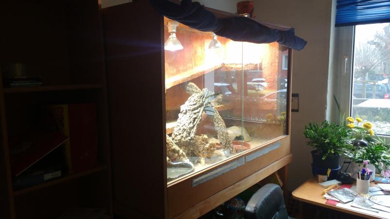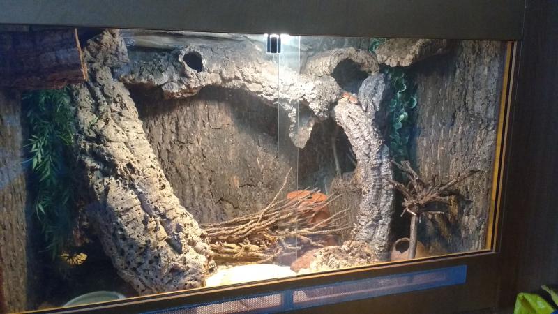 Das Terrarium steht auf einem Unterbau.Komplette Einrichtung ist dabei!