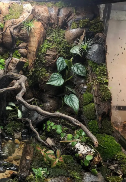 Das Problem: ich möchte kein Epoxidharz oder ähnliches verwenden (nicht billig, kompliziert und bei unsachgemäßer Handhabung giftig). Und Bauschaum im besetzten Becken geht auch nicht. Idealerweise suche ich Materialien, mit denen ich in einem Feuchtterrarium um die Versiegelung "herumkomme". Und wichtig ist, dass es am Ende sehr natürlich aussieht und zum Rest der Landschaft passt. Echte Steine wären zu schwer. Hat jemand Erfahrung mit Presskork oder anderen Materialien? Es soll von hinten glatt an die Wand geklebt werden und stabil sein.