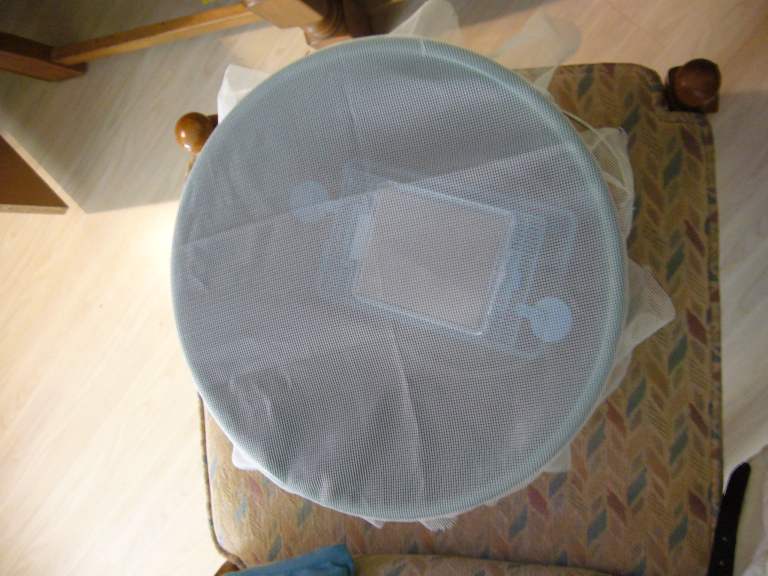 Hab dir mal 2 Bilder von mir angehängt. Die Seitenteile im Deckel konnte ich nicht zumachen, da ich nicht genug Drahtgaze hatte. Das eine Bild ist nicht besonders scharf, ich musste schnell sein, sonst hab ich hier ne Heimchenfamilie im Wohnzimmer.