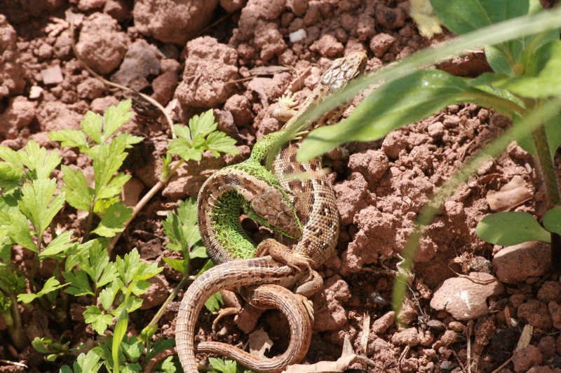 Bei der Eidechse ist es klar - ein Lacerta agilis Weibchen.
