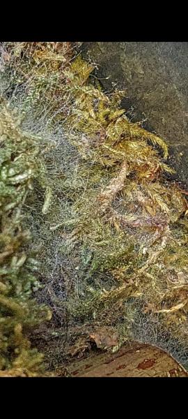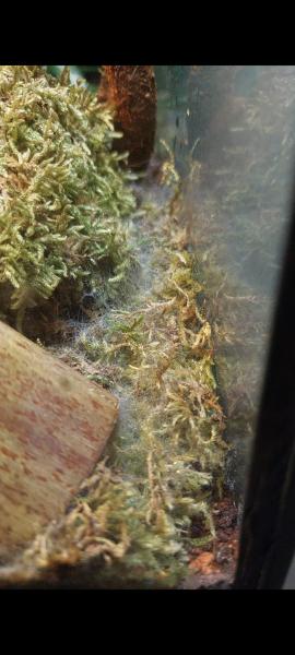 Ist eine Spinne im Terrarium und hat sich Häuslich niedergelassen oder handelt es sich hier um Schimmel der über Nacht gewachsen ist ?