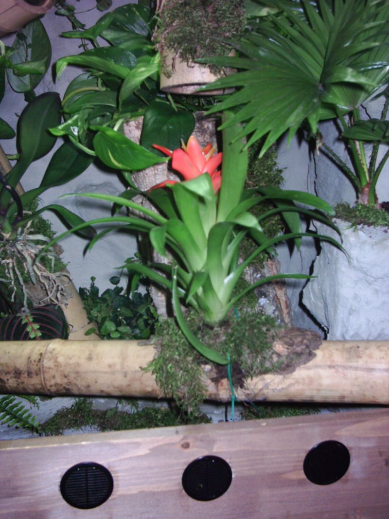 habe jetzt eine Guzmania-Art mit Hilfe von Rinde und Moos auf ein waagerechtes Bambusrohr aufgebunden. Das ganze hält auch soweit ganz gut, nur der Blütentrichter kippt bei der kleinsten Bewegung im Terrarium immer seitlich weg. Gibt es eine Möglichkeit wie ich die Pflanzen irgendwie stabilisieren kann? Eine Astgabel habe ich an der Stelle nicht wo ich die Pflanze anlehnen könnte. Hat jemand ne Idee, sonst müsste ich die Bromelie umsetzten...