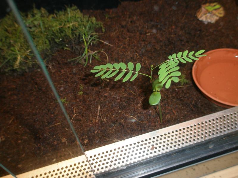 Anfang des Monats hab Ich ein Terrarium neu eingerichtet,und vor kurzem hat sich da eine mir unbekannte Pflanze gezeigt,die da aus dem Humus gewachsen ist.