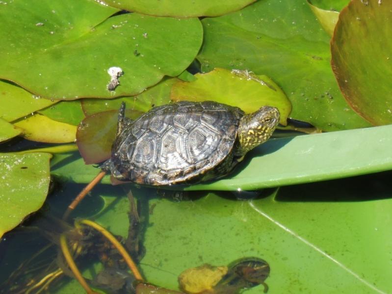 dieser Gast hat sich seit einigen Tagen in einem Gartenteich bei Wernigerode bereitgemacht. Kenne mich nicht sehr gut bei Schildkröten aus. Sie ähnelt aber sehr einer Europäischen Sumpfschildkröte. Wäre aber sehr unwahrscheinlich. Kann jemand näheres sagen?