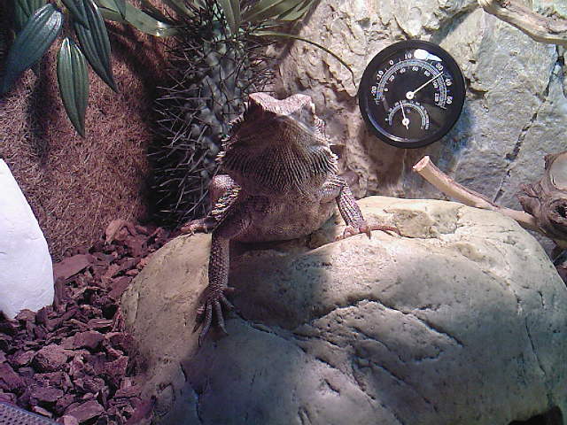 Magicmaus,das ist ganz einfach! Ich habe meine HQI lampe noch nicht da, und es ist etwas dunkel im terrarium.Und wolte ihn schliesslich gut treffen... hier hast du eins aus dem Terrarium...