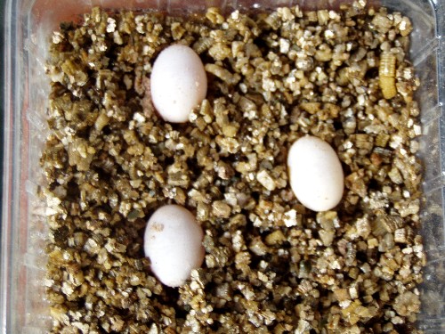 Meine Shakira (P. henrylawsoni) ist schon lange trächtig. Wartete immer auf ihr Gelege. Doch außer Grabungen machte sie nichts - vorerst. Seit 3-4 Tagen war mir immer, als hätte sie weniger Beulen, aber sah nicht wirklich dünner aus. Heute habe ich es dann getan, ich habe nach Eier im Terrarium gesucht. Dabei dauerte es nicht lange und ich wurde fündig. Nun meine Frage: