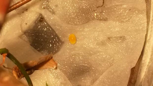 Heute morgen habe ich am Boden des Terrariums meiner Ch. hoehnelii Dame Lieselotte ein Gebilde gefunden, was ich nach allem was ich bisher über Chamäleons gelesen habe als Wachsei bezeichnen würde.