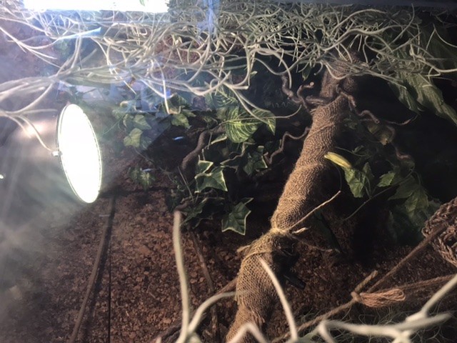 ich habe vor ca. 2 Wochen ein 3 Jahre altes Jemenchamäleon Weibchen gekauft. Das ist mein erstes Chamäleon und ich wollte mir ein paar Tipps und Ratschläge holen und ob ich bis jetzt alles richtig mache. Futter bekommt sie von mir alle 2-3 Tage. Sie bekommt Heimchen und Wanderheuschrecken. Davon frisst sie jeweils eine. Als supplementierung gebe ich auf der Futter der Futtertiere Heptal Complete T und Mineral+ D3. Calcium muss ich noch holen, da das wegen dem erneuten lokdown eine ziemliche Herausforderung ist etwas für das Chamäleon zu bekommen... Als UVB Strahler verwende ich die Exo Terra Reptile UVB 200 mit 25 W. Hatte der Vorbitzer auch schon verwendet. Sie ist auch sehr aktiv und klettert viel und frisst auch gut. Sie sitzt um die Mittagszeit bis zum Nachmittag unter der Wärmelampe. Mir ist nur aufgefallen das sie dort sehr dunkel ist. Hat da jemand eine Idee wieso? Ich hatte gelesen, dass sie das machen um sich besser aufzuwärmen. Stimmt das? Ansonsten ist sie immer schön Grün. Ich stelle noch ein paar Bilder rein und bin für Verbesserungsvorschläge und allgemeine Tipps und Ratschläge sehr dankbar.