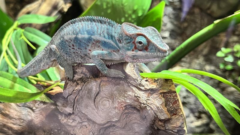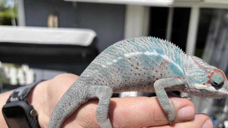 ich habe seit 3 Wochen ein Nosy be Pantherchamäleon das eigentlich blau/türkis ist. Doch in letzter Zeit ist er meist graubraun schwarz. Nachts wird er dann weiß mit rot.