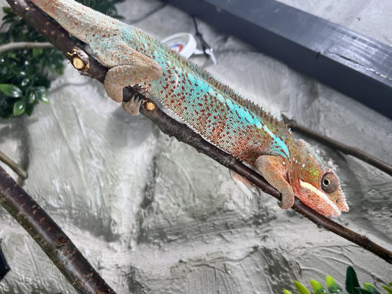 Hallo, ich habe mir vor einer Woche ein Pantherchamäleon mit ca. 9Monaten gekauft, er ist Männlich - ich mache mir etwas Sorgen ob es dem kleinen in seinem neuen Zuhause gut geht oder ob ich was ändern sollte;