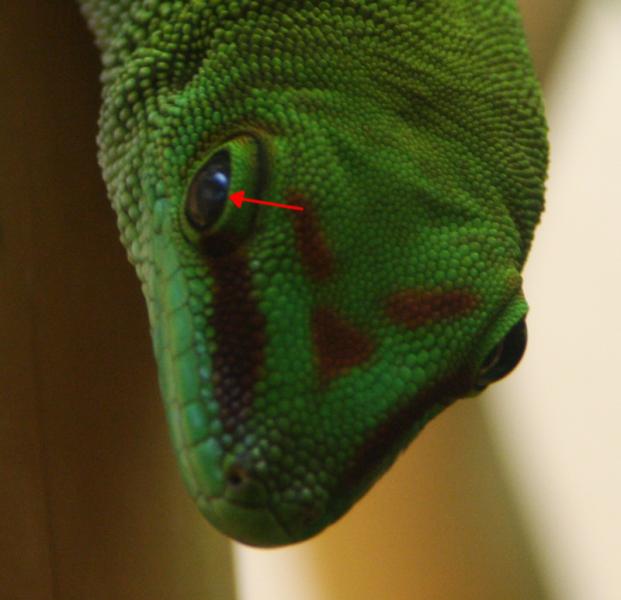 Bei meinem Beppo haben wir dann im November einen Schleier über dem rechten Auge entdeckt und eine leichte Delle. Er versteckte sich dann auch ungewohnterweise vor uns und wollte auch nicht mehr richtig essen. Ich bin dann aus Angst vor einer Bindehautentzündung zum Tierarzt gefahren. Der hat festgestellt, dass es sich um einen Häutungsrest handelt. Ich habe dann die Vitaminzufuhr mit Korvimin erhöht und Beppo immer wieder leicht ein feucht-warmes Tuch auf sein rechtes Auge gehalten. (Zum Glück ist er dabei sehr still sitzen geblieben). Zwei Häutungen später war dann auch wieder alles in Ordnung.