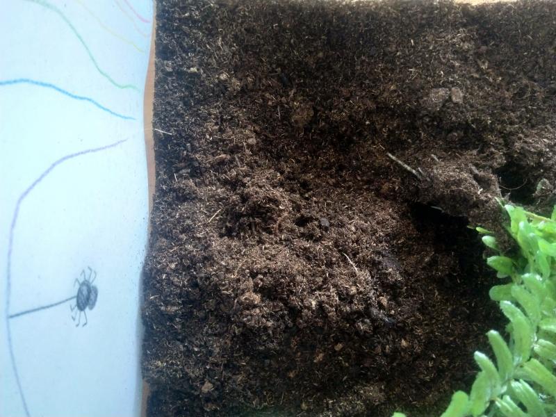 Sie lebt jetzt in einem Terrarium mit 30x30x40 cm. Sie bekommt Heuschrecken zum fressen.