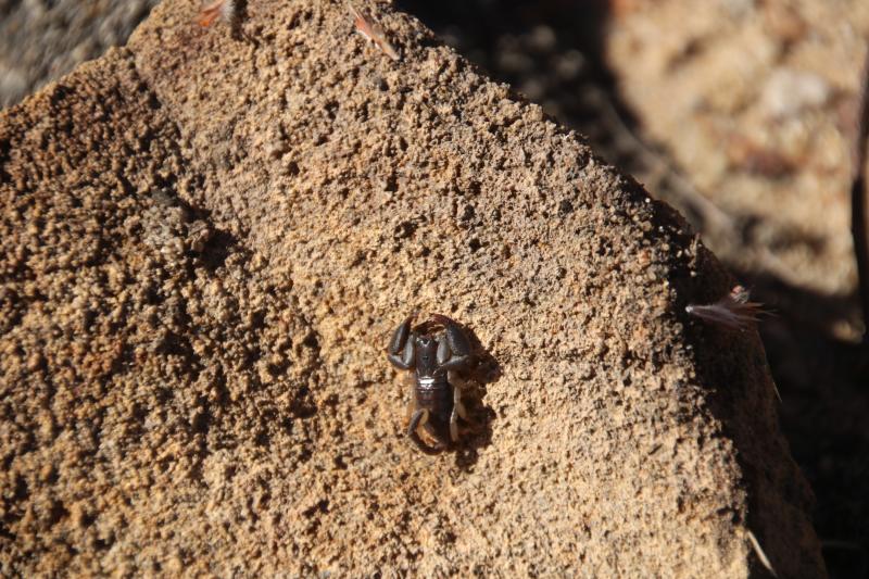 auf der Reise in Madagaskar haben wir im Isalo-Nationalpark unter einem Stein einen etwa 3-4 cm kleinen Skorpion entdeckt.