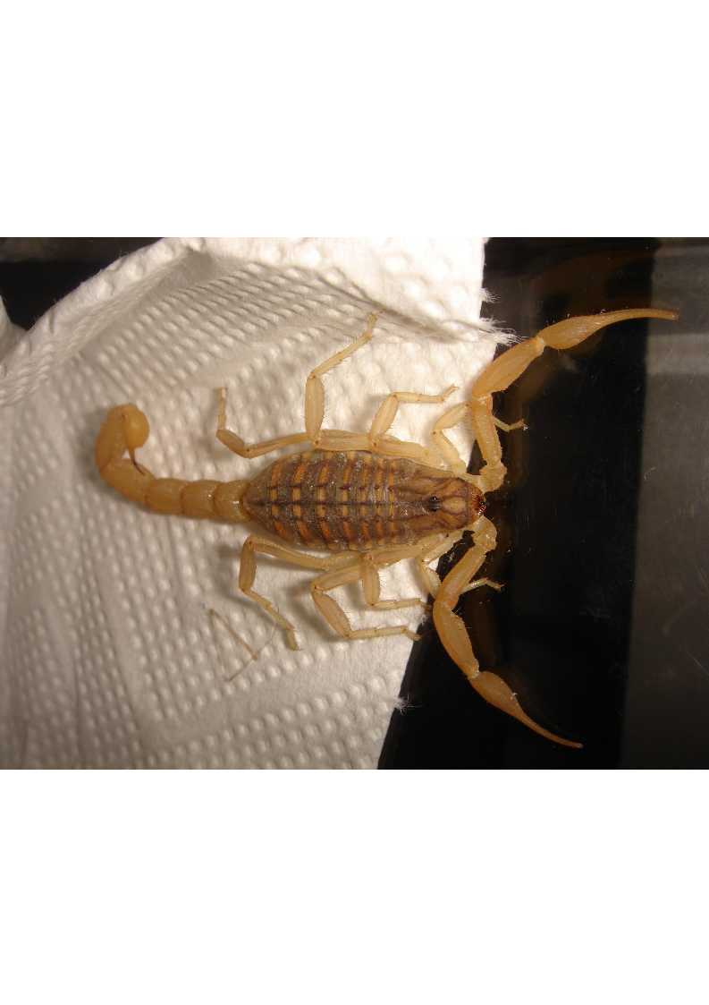 Am Bremer Flughafen wurde gestern dieser Skorpion unbekannter Herkunft aufgegriffen und danach zu uns gebracht. Weiss jemand sicher, welche Art das ist?